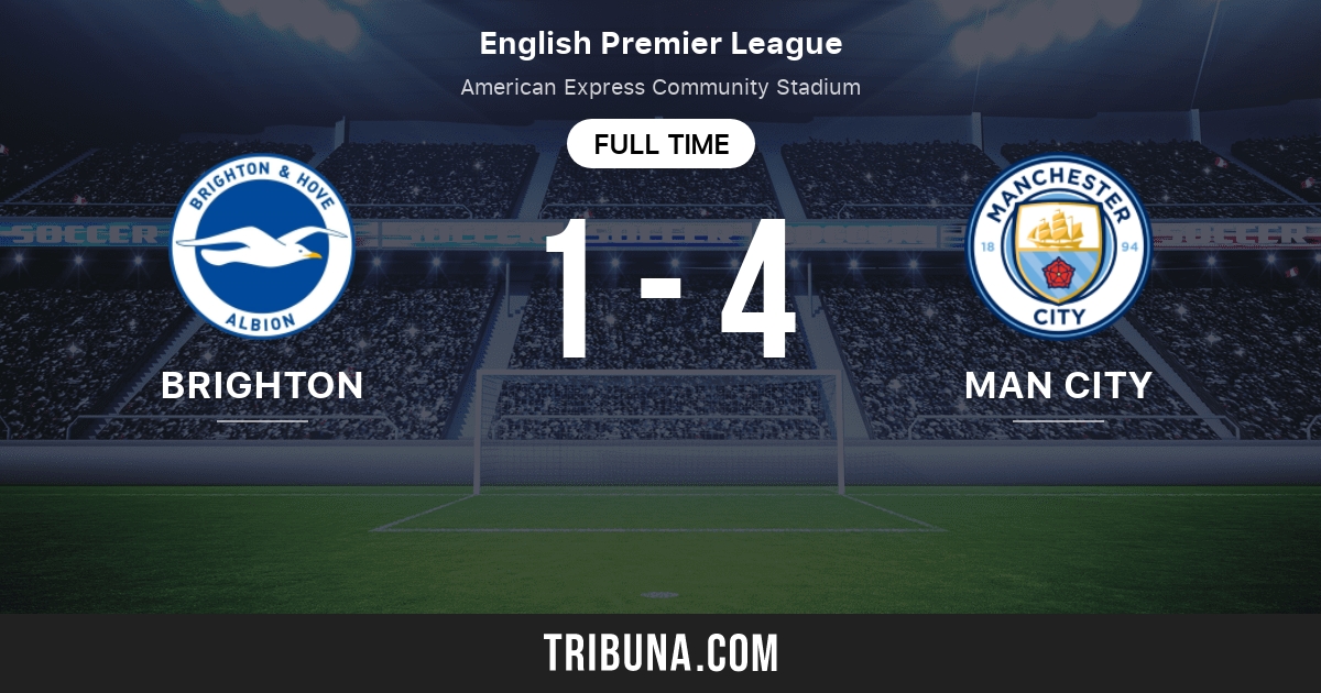 Out of 9 previous meetings Brighton Hove Albion have won 1 matches while. Brighton vs Man City Prediction Verdict. Brighton in actual season average scored 115 goals per match.